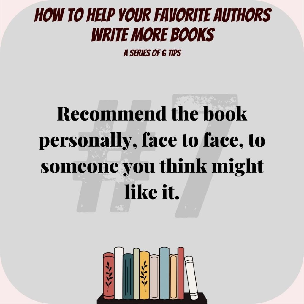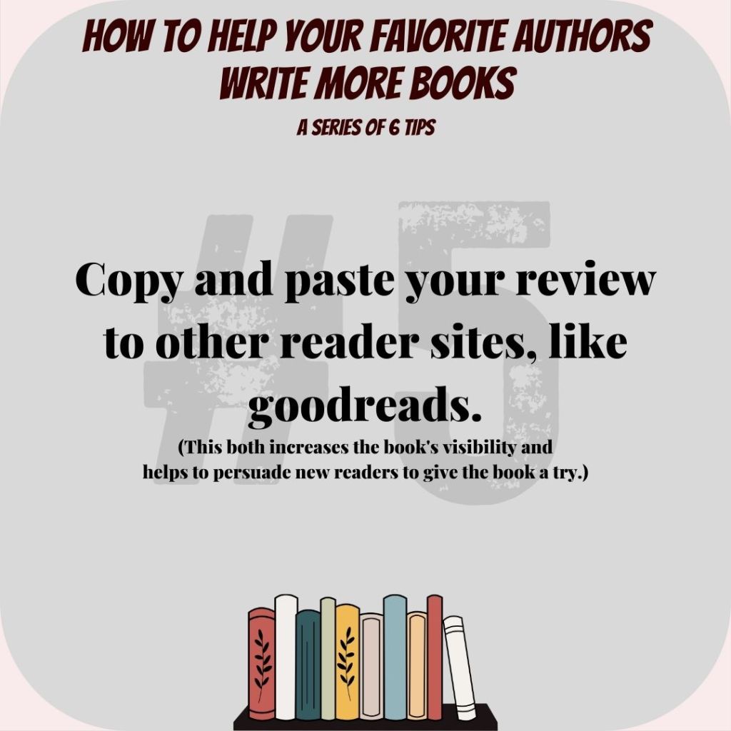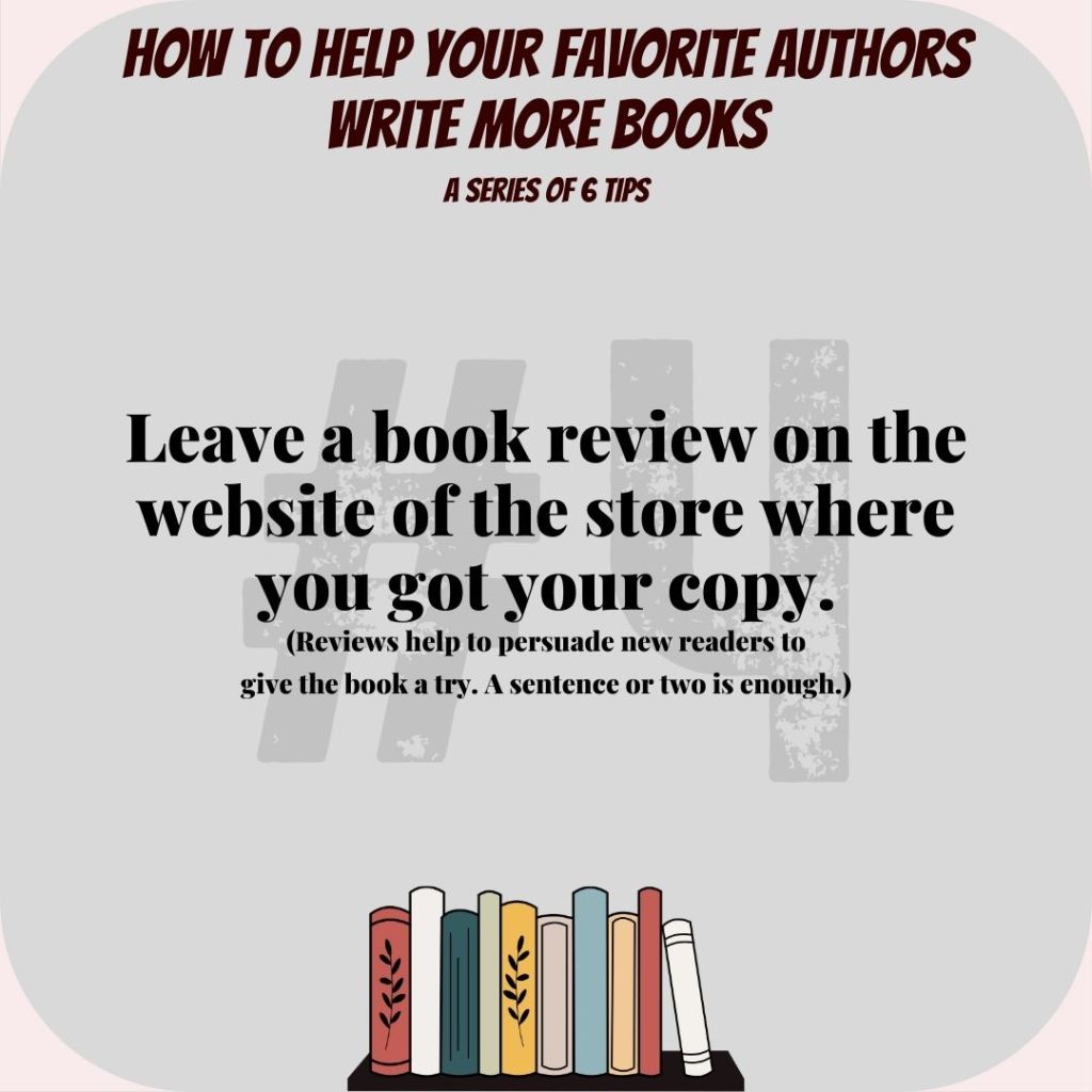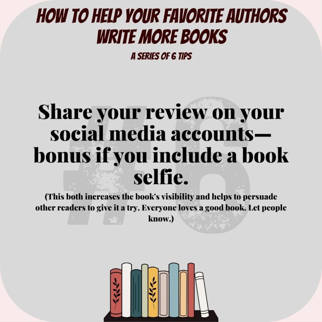 By helping writers increase their books’ visibility and helping to encourage readers to give the writer’s books a try, you help the writer to both turn their writing into their job that pays the bills and help ease the burden of having to promote, all of which frees up more and more time for the writer to write more of the books you love.
